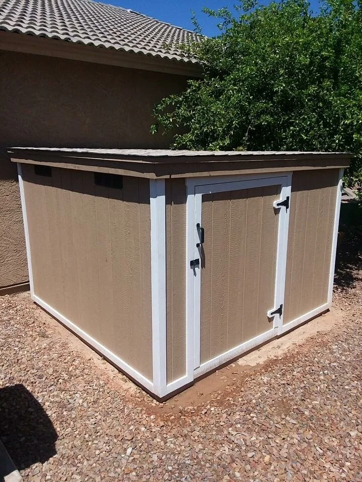 “I have to give a shout out to Wade at Knight’s Sheds for building us this awesome custom shed (4x17x8x15ft) for our backyard. We had an odd shaped space, and of course it had to be lower than our walls to meet HOA guidelines. He is such a pleasure to work with and we are very pleased with his workmanship. The paint colors match our house as well. It was a lot cheaper than the Tuff Shed quotes we got. If you are looking for a shed, I highly recommend him. ”